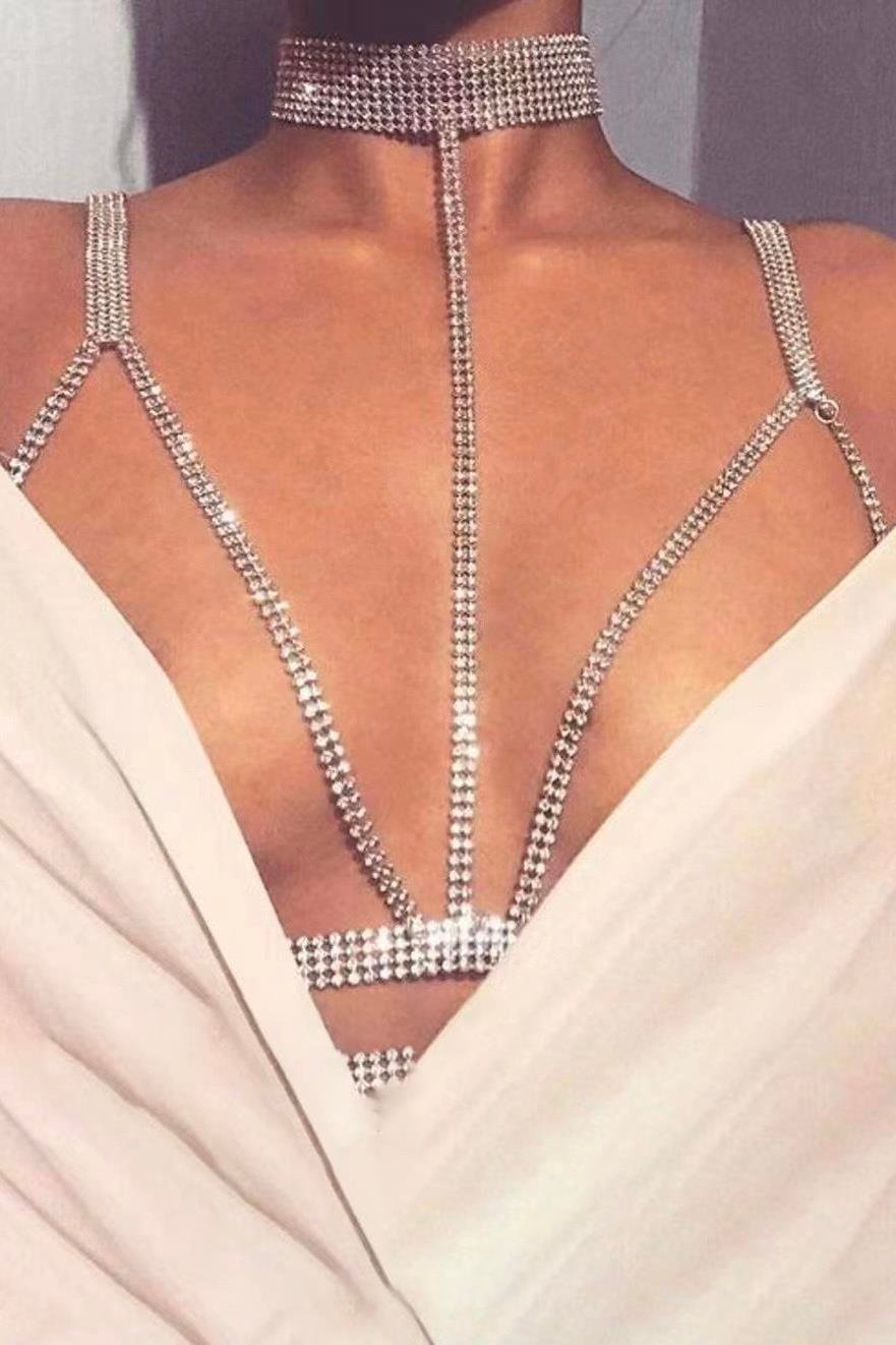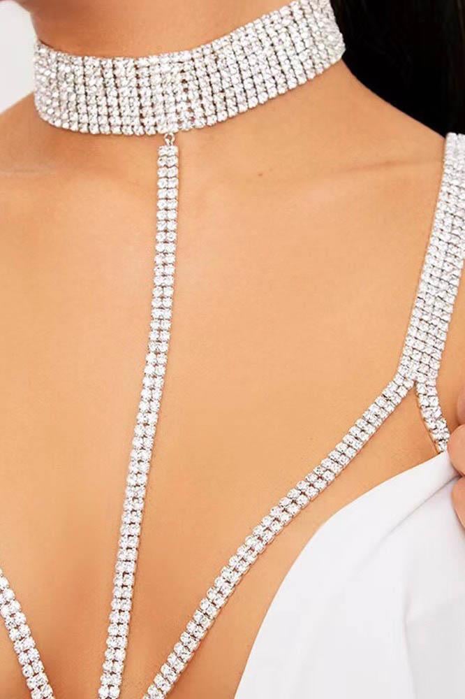 Gümüş Renk Taş Detaylı Tasarım Vücut Aksesuar