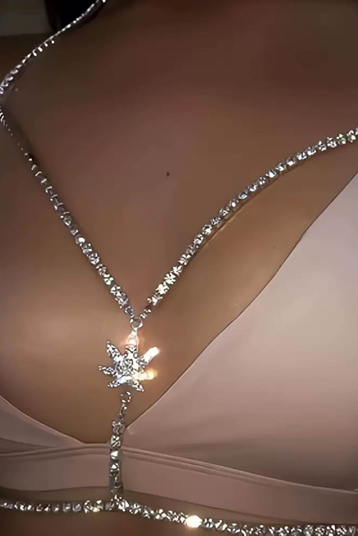 Gümüş Renk Taş Detaylı Tasarım Vücut Aksesuar