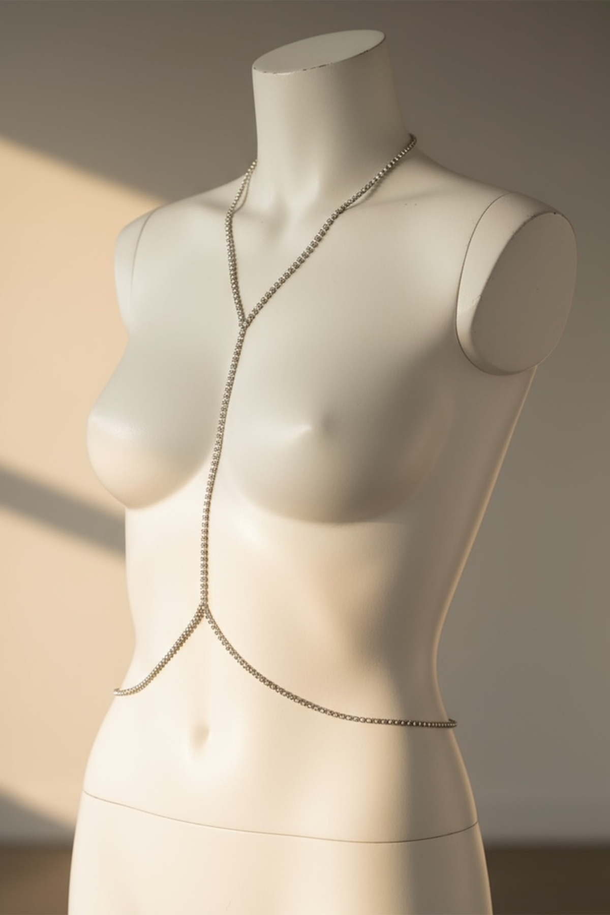 Gümüş Renk Taş Detaylı Vücut Aksesuarı