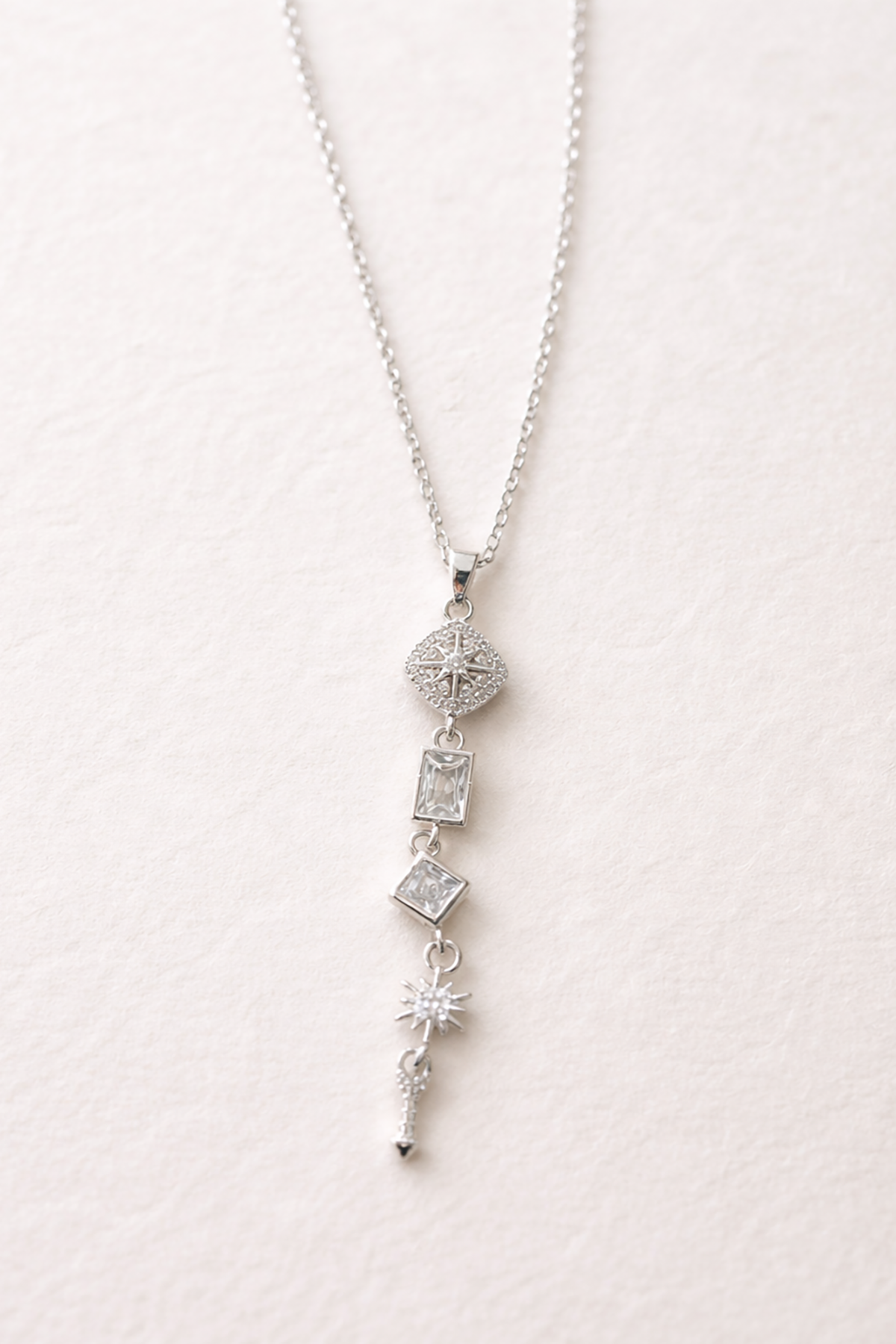 Gümüş Renk Taş Detaylı Y Kolye