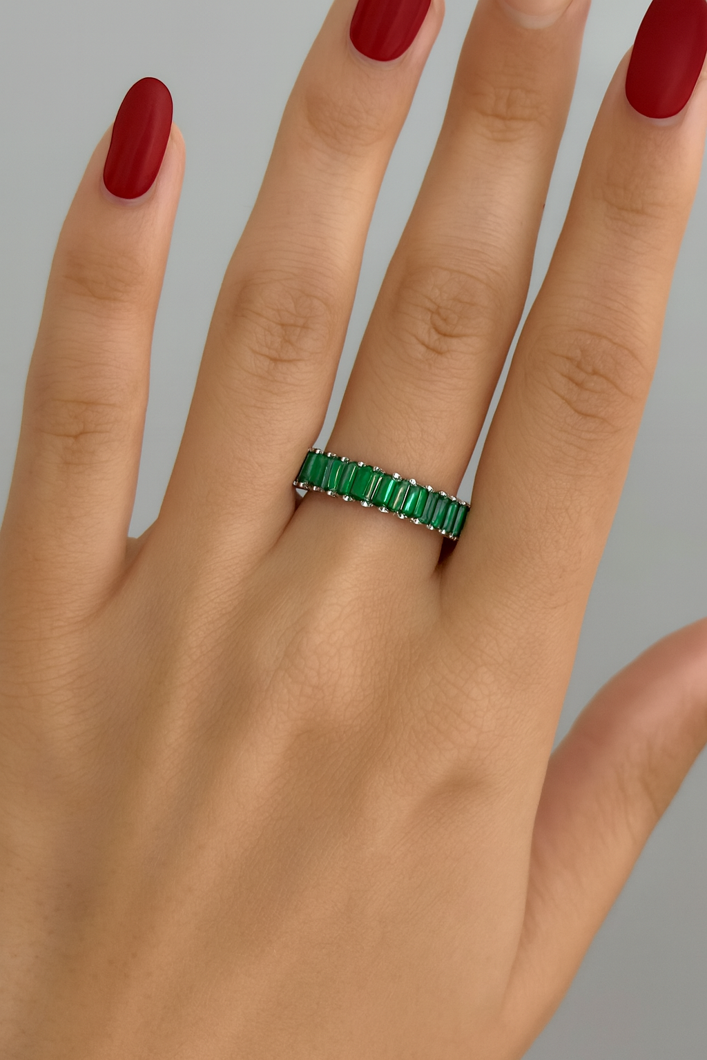Gümüş Renk Yeşil Taş Detaylı Ayarlanabilir Çelik Yüzük