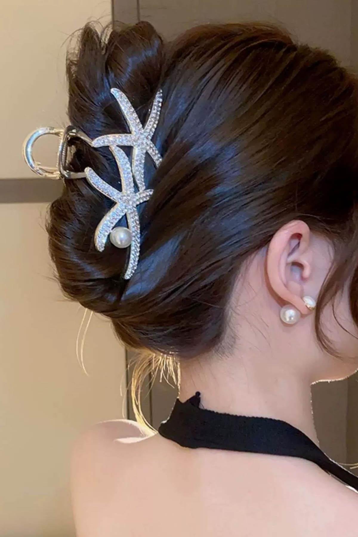 Gümüş Renk Yıldız Figürlü İnci Detaylı Metal Mandal Toka