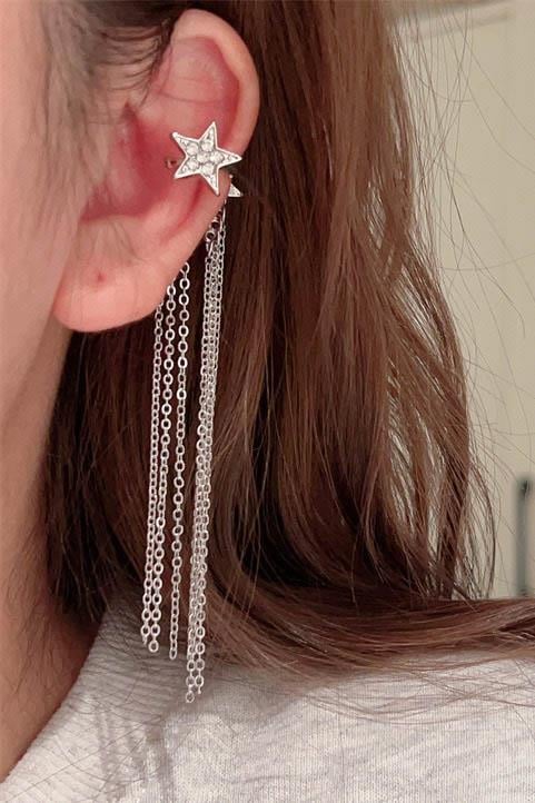 Gümüş Renk Yıldız Figürlü Sallantılı Kulak Aksesuarı (Tek)