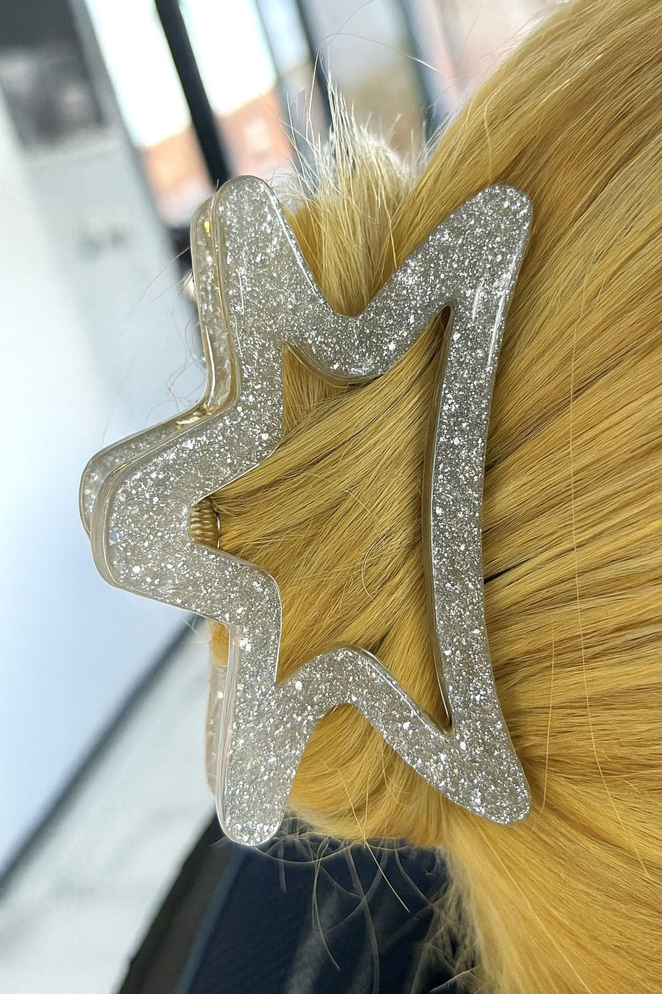 Gümüş Renk Yıldız Figürlü Simli Kemik Mandal Toka