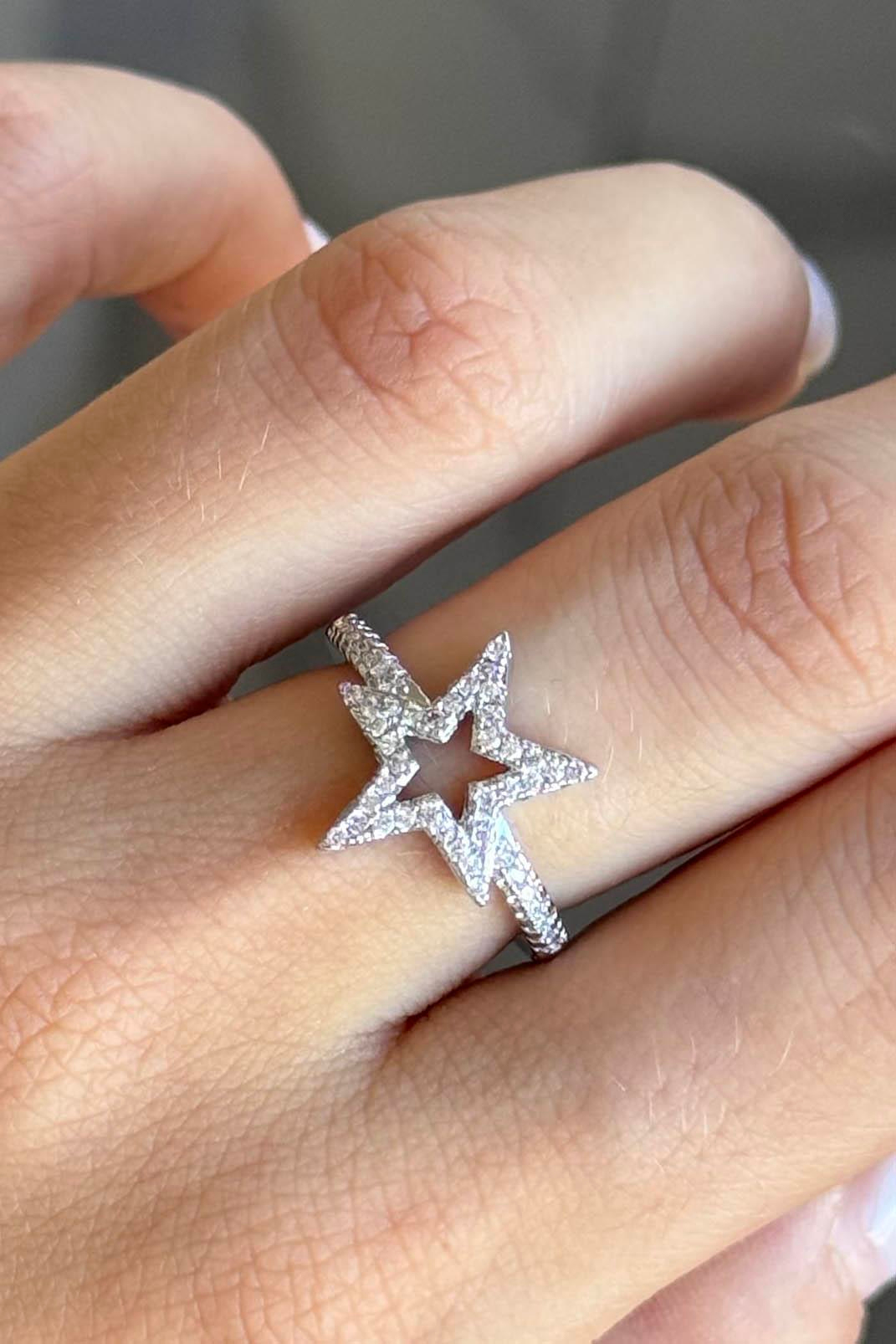 Gümüş Renk Yıldız Figürlü Taş Detaylı Ayarlanabilir Çelik Yüzük