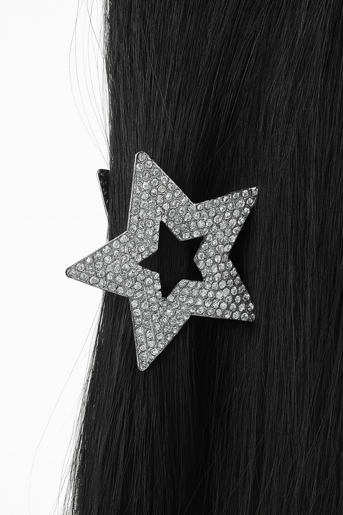 Gümüş Renk Yıldız Figürlü Taş Detaylı Metal Mandal Toka