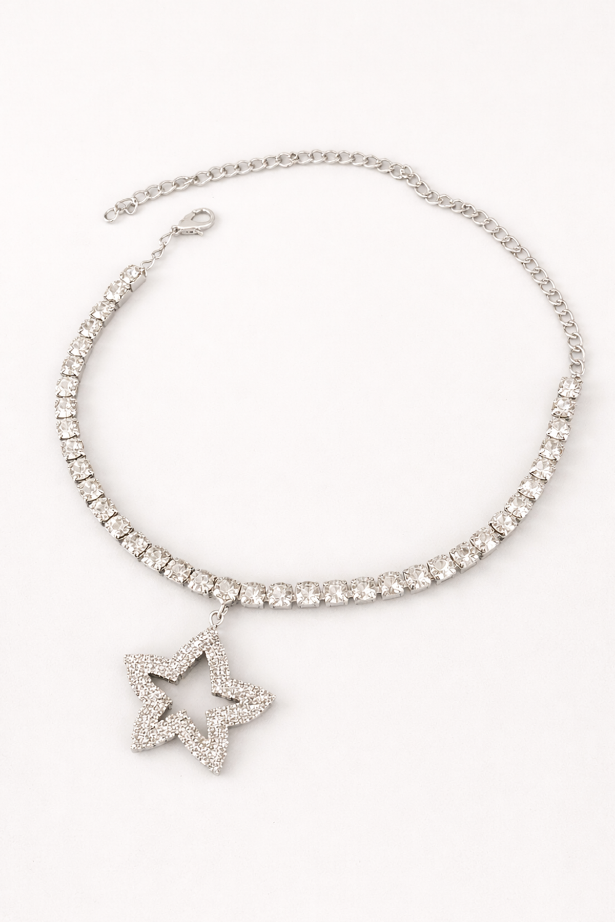 Gümüş Renk Yıldız Figürlü Taş Detaylı Tasarım Halhal