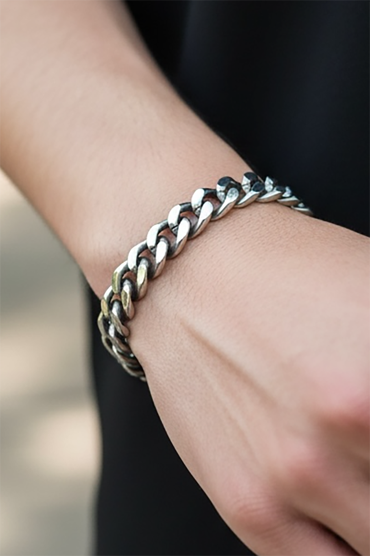 Gümüş Renk Zincir Detaylı Çelik Erkek Bileklik