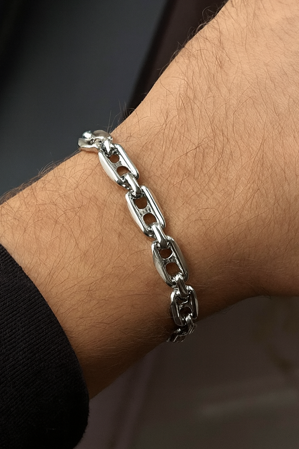 Gümüş Renk Zincir Detaylı Çelik Erkek Bileklik