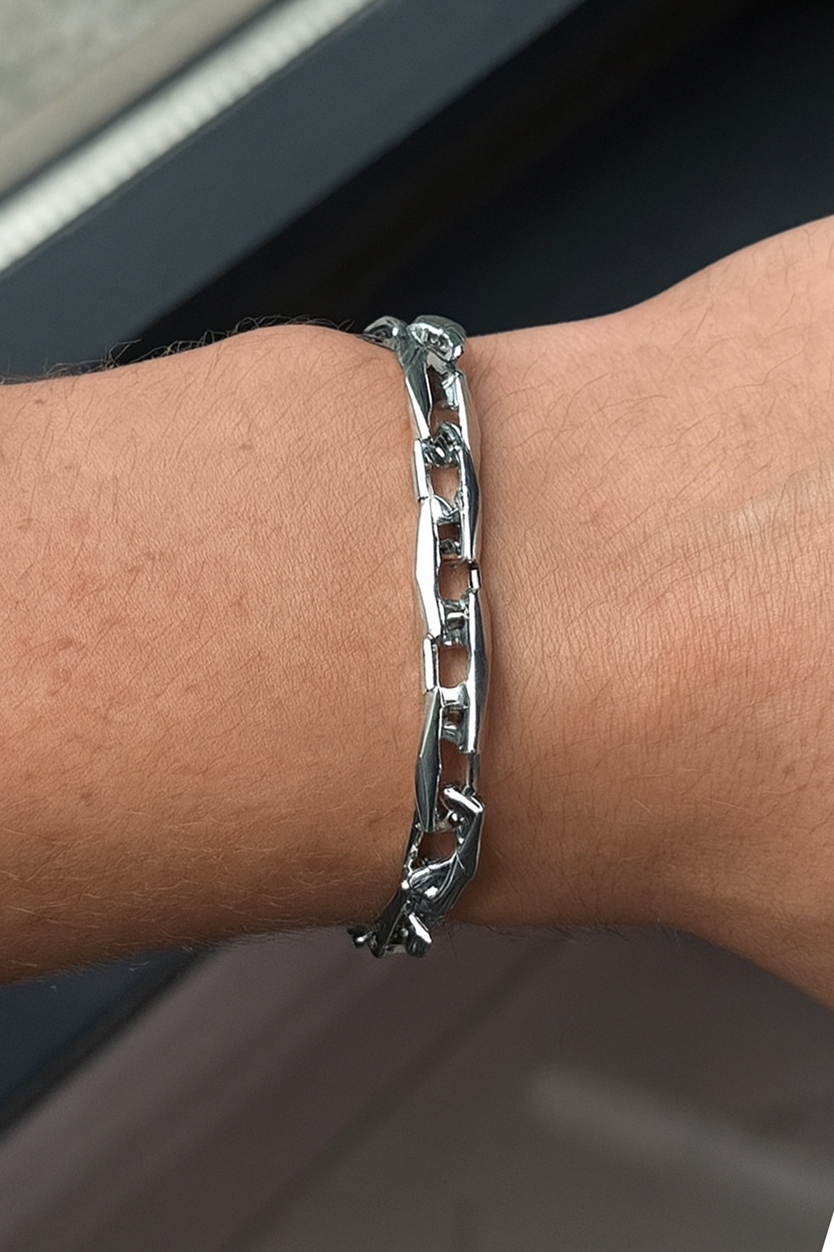 Gümüş Renk Zincir Detaylı Çelik Erkek Bileklik