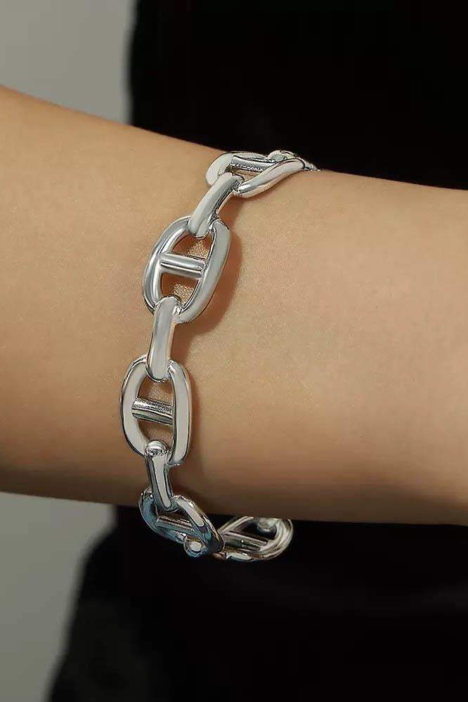 Gümüş Renk Zincir Detaylı Çelik Kelepçe Bileklik