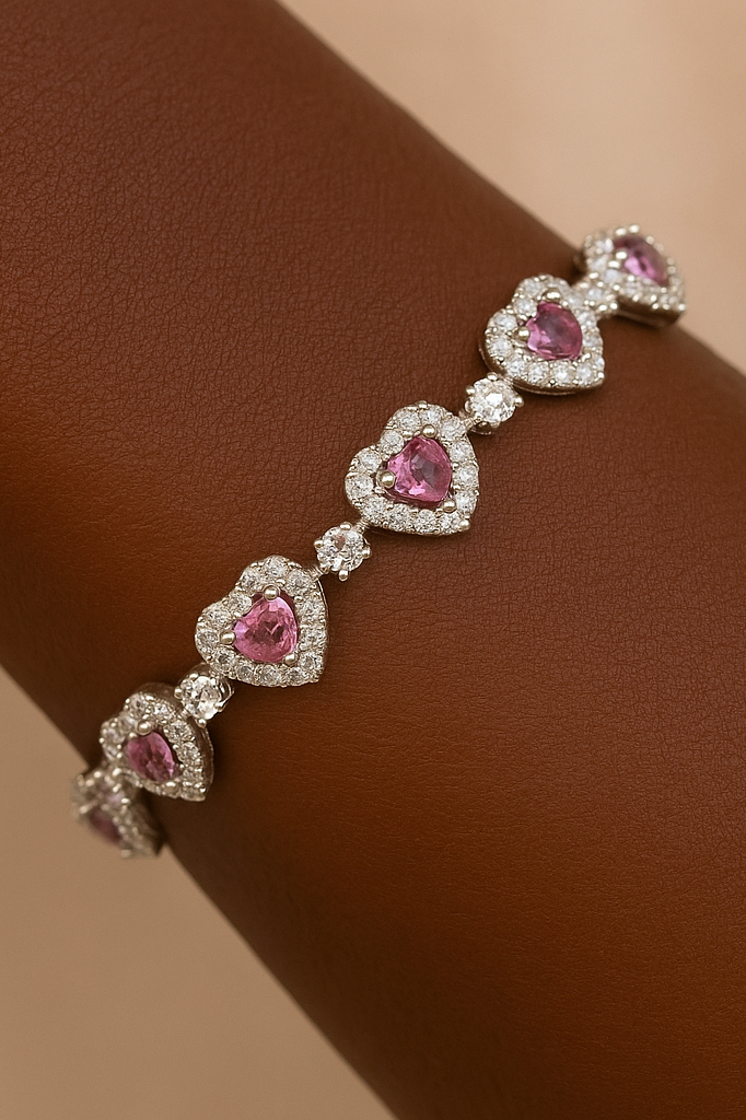 Gümüş Ve Pembe Renk Kalp Figürlü Tasarım Bileklik