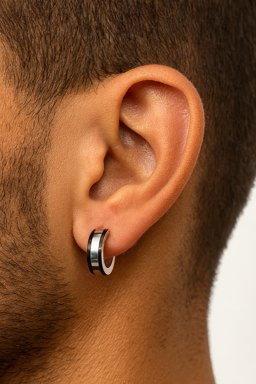 Gümüş Ve Siyah Renk Çelik Erkek Küpe (Çift)