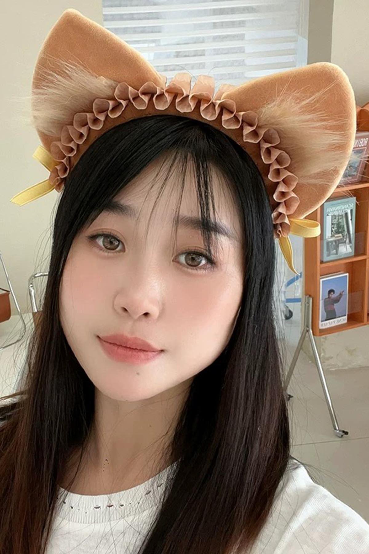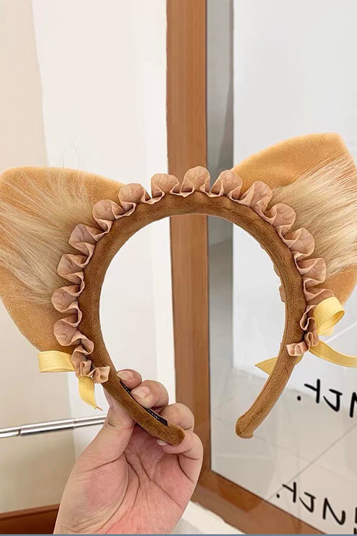Kahverengi Kedi Kulak Detaylı Peluş Taç