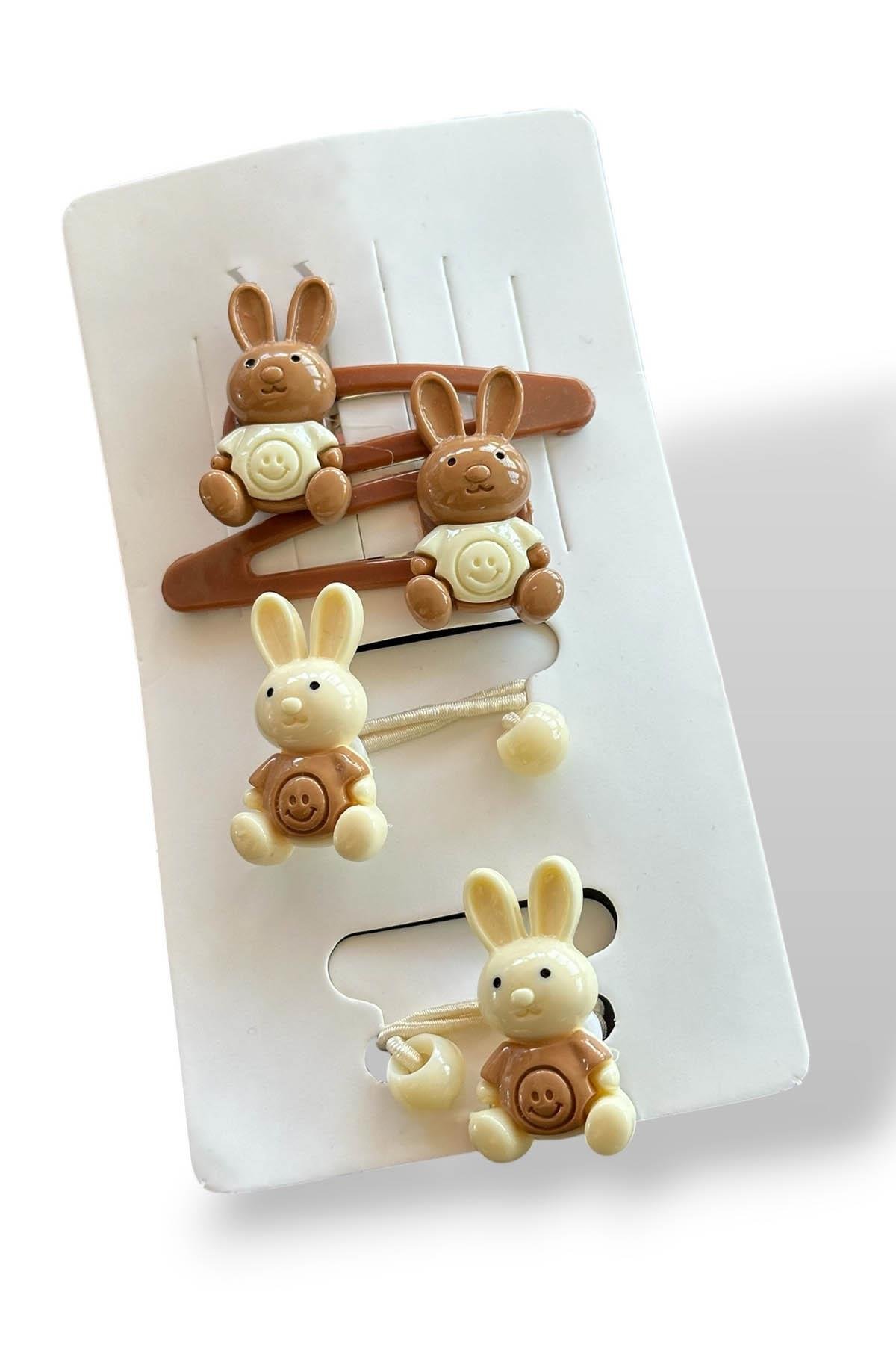 Kahverengi Tavşan Figürlü Yan Toka Ve Lastik Toka Set