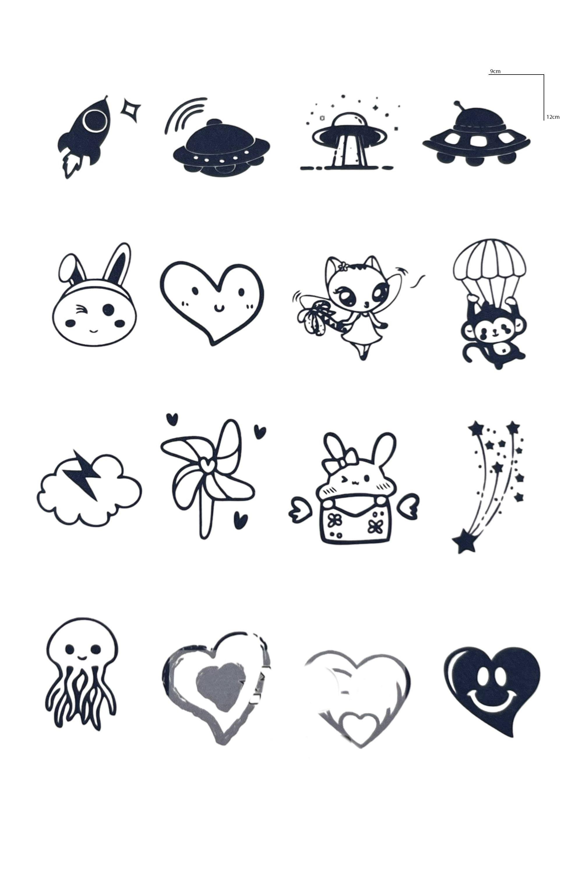 Karışık Figürlü 12 Saat Sonra Kararan Geçici Dövme Tattoo