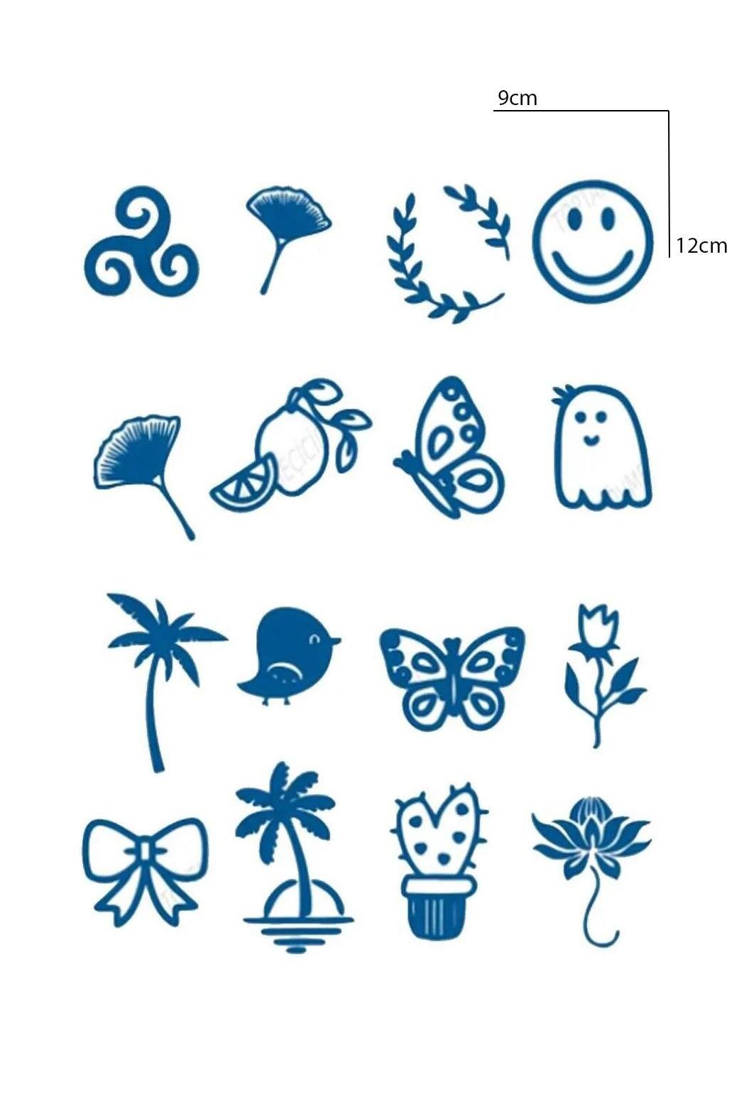 Karışık Figürlü 12 Saat Sonra Kararan Geçici Dövme Tattoo