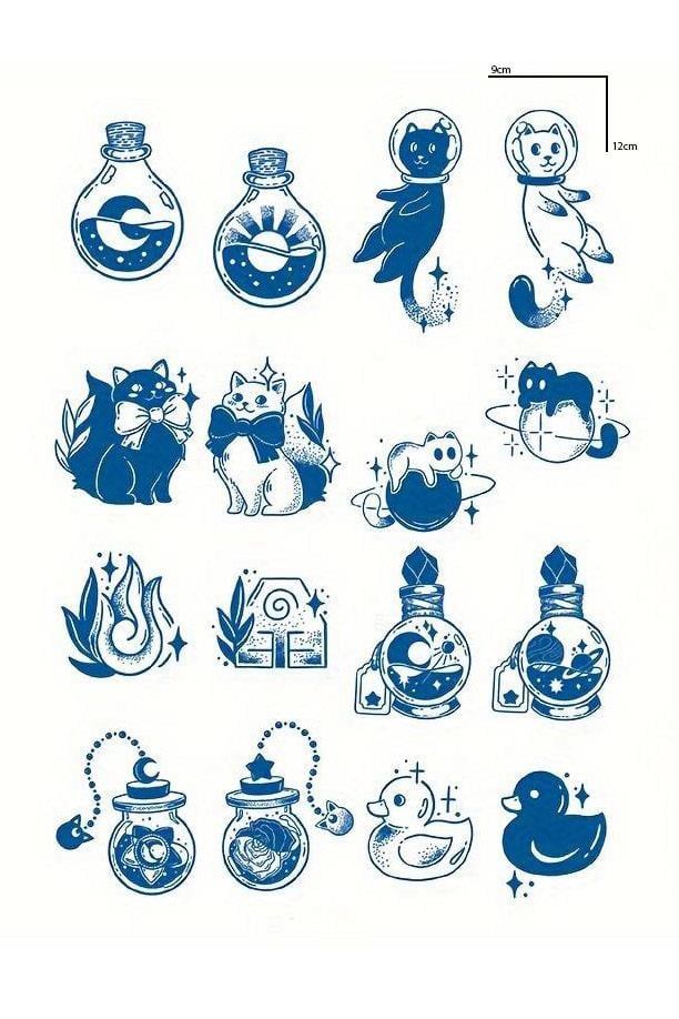 Karışık Figürlü 12 Saat Sonra Kararan Geçici Dövme Tattoo
