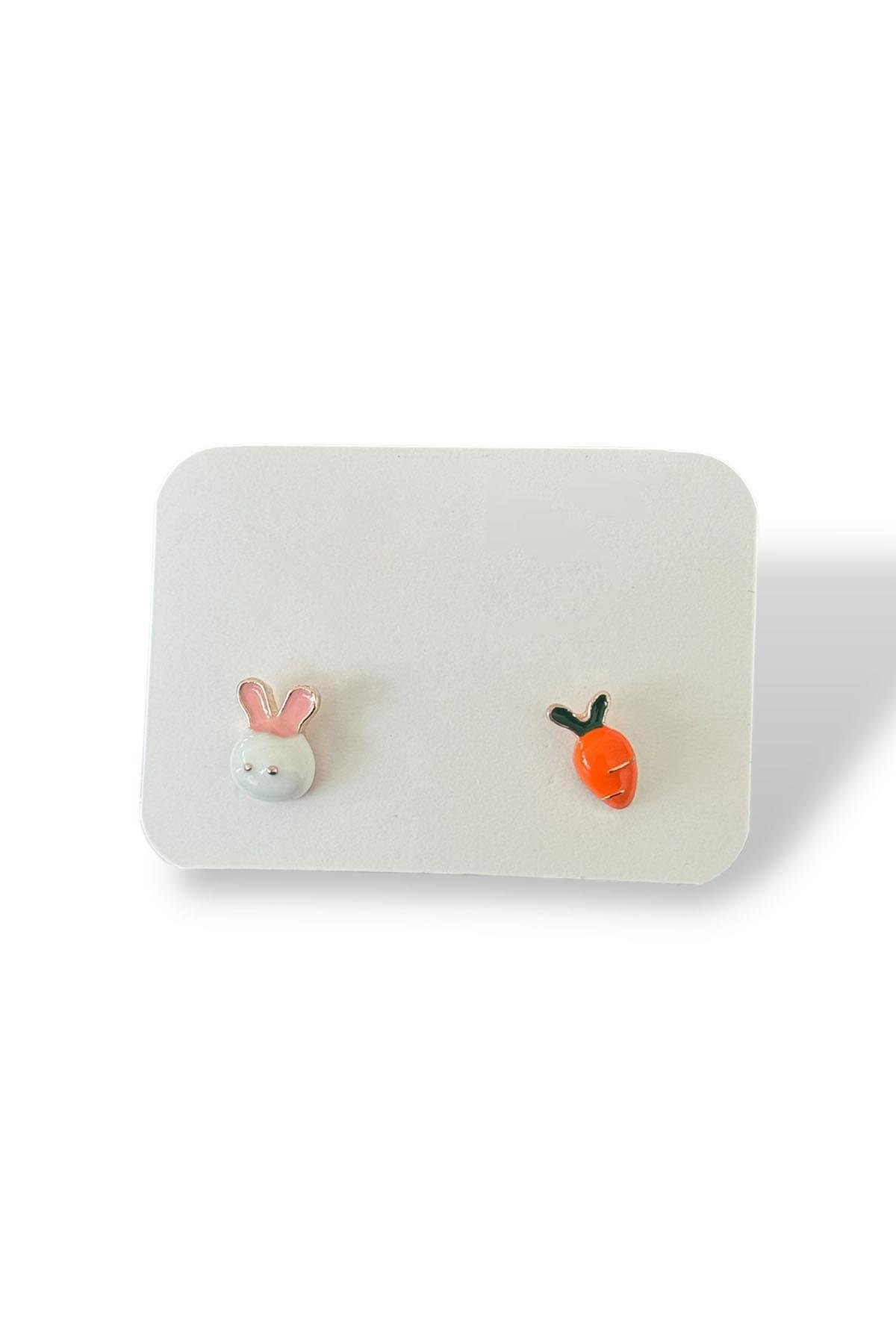 Karışık Renk Havuç Ve Tavşan Figürlü Çocuk Küpe (Çift)