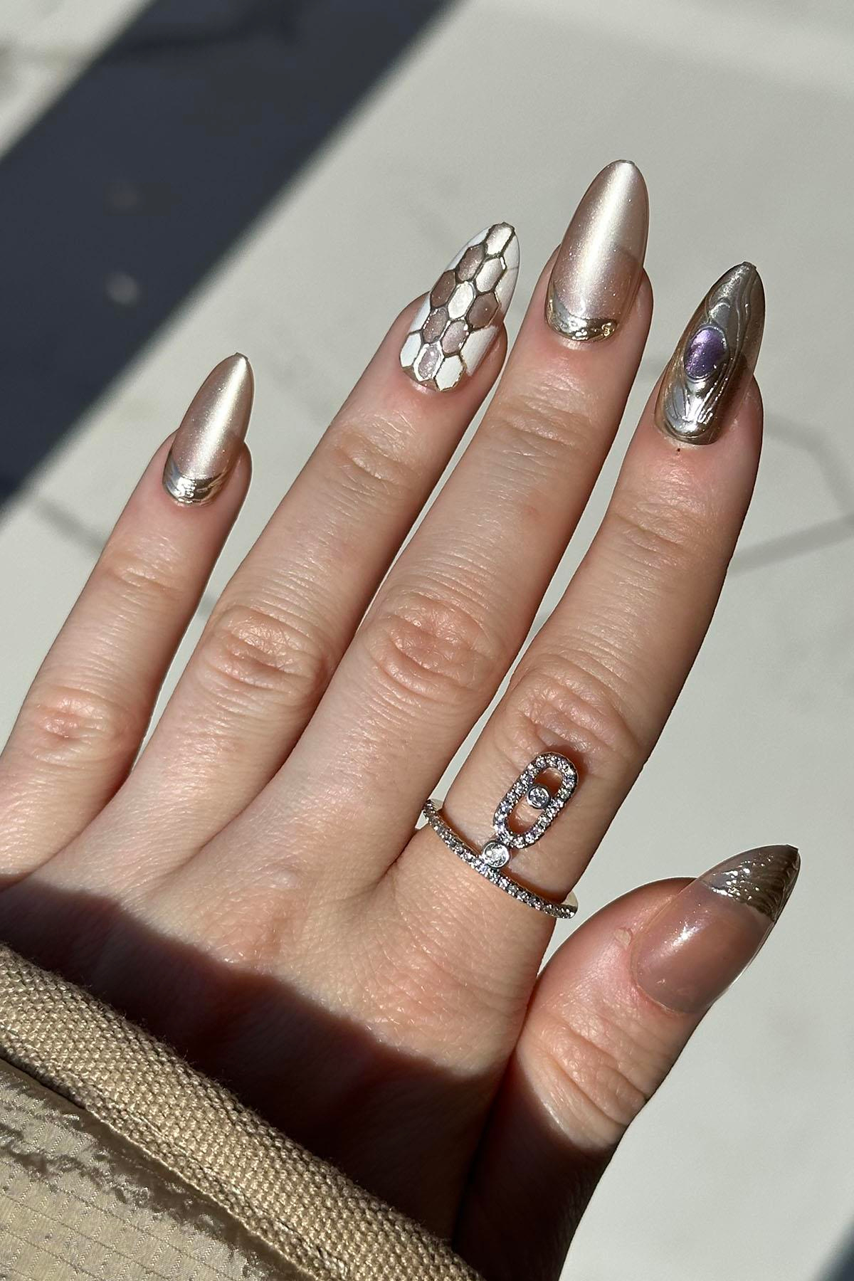 Zarif ve kendinden cilalı takma tırnaklar, etkileyici bir görünüm sağlar.