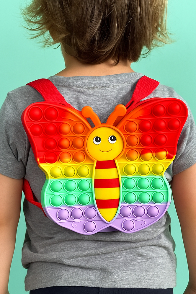 Bu kelebek figürlü pop it çocuk çantası, miniklerin en sevdiği aksesuar olmaya aday 💖