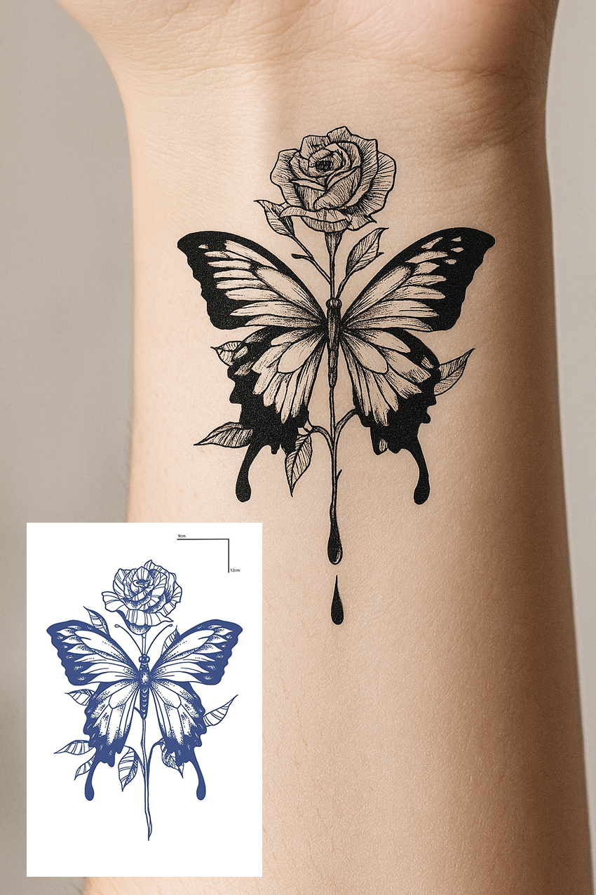 Kelebek Figürlü 12 Saat Sonra Kararan Geçici Dövme Tattoo