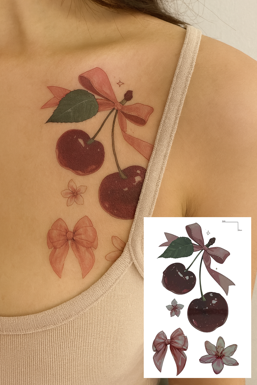 Kiraz Ve Kurdele Figürlü Mini Dövme Tattoo