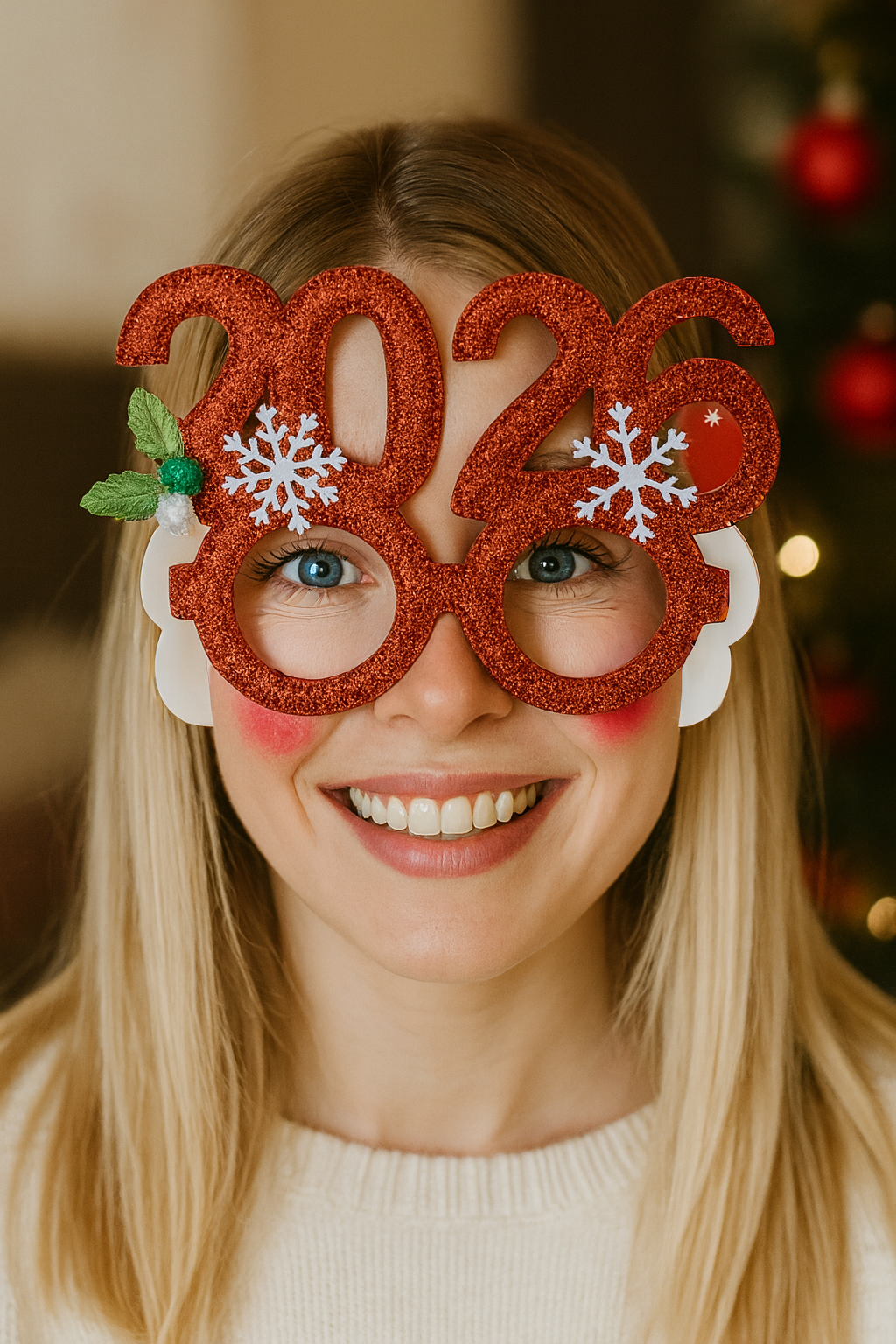 Kırmızı Renk 2026 Yılbaşı Temalı Gözlük