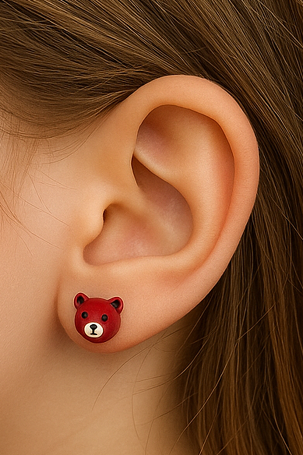 Kırmızı Renk Ayıcık Figürlü Çocuk Küpe (Çift)