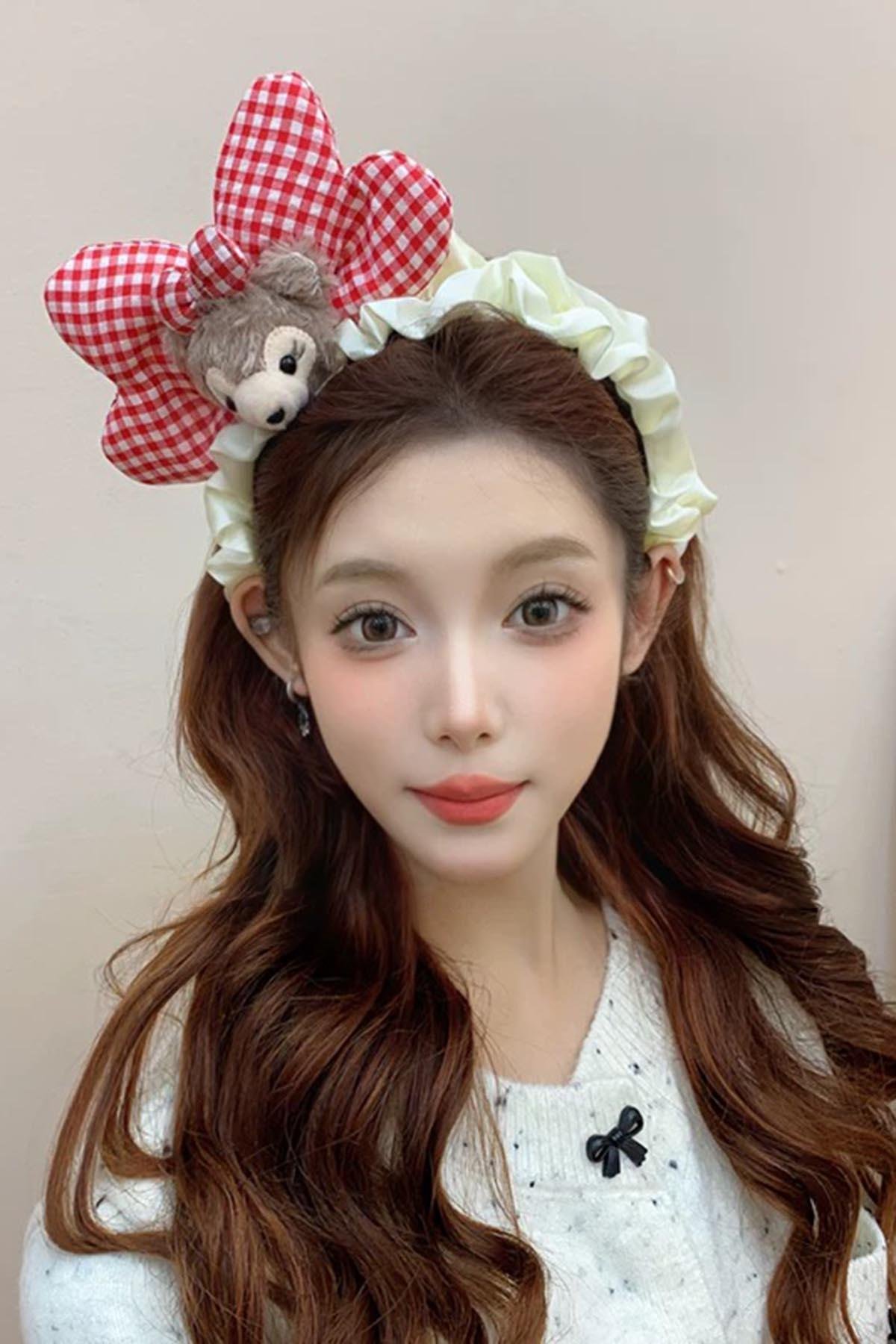 Kırmızı Renk Hayvan Figürlü Peluş Kurdele Taç