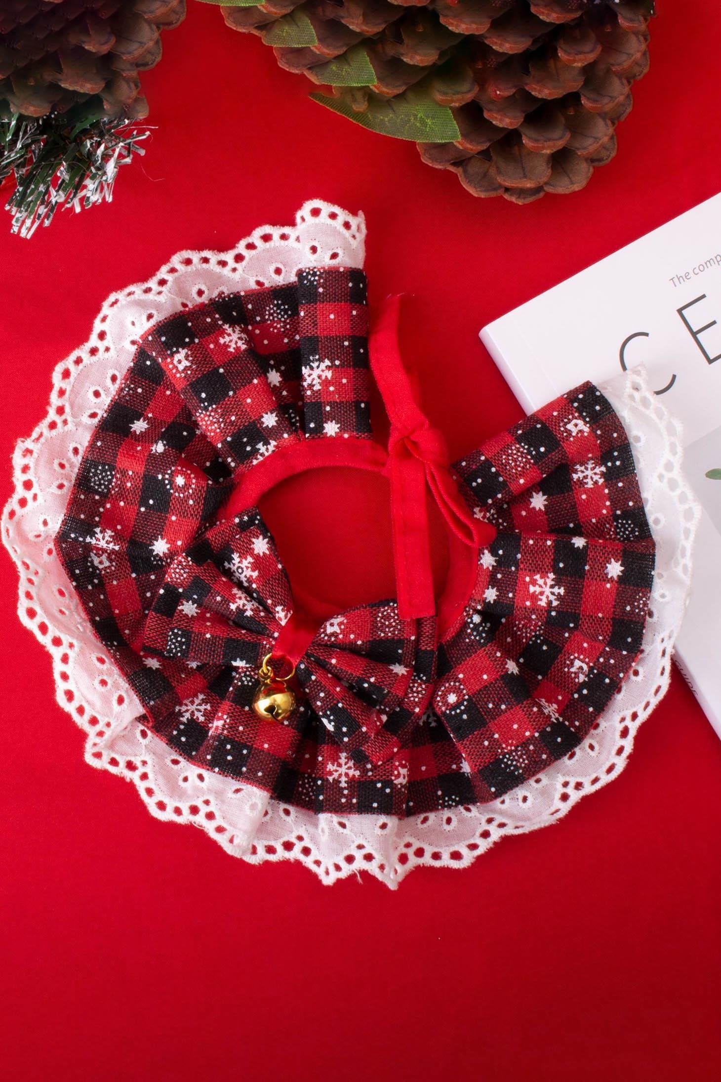 🎀 Kırmızı Kareli Fırfırlı Köpek Tasması 🎀