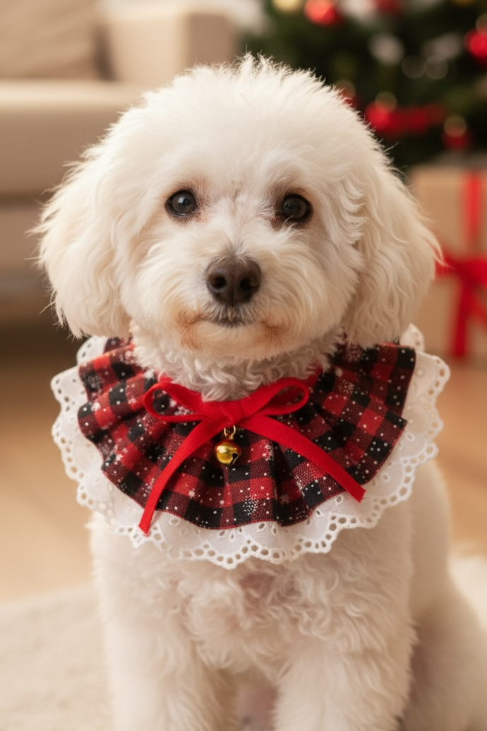 Minik dostunuza şıklık katacak bu kırmızı kareli fırfırlı köpek tasmasıyla her an fotoğraflık! Yumuşak pamuklu kumaşı sayesinde cilt dostudur ve rahatsız etmez. Şık dantel detayları, kırmızı kurdele ve küçük ziliyle hem zarif hem de dikkat çekici bir görünüm sunar.