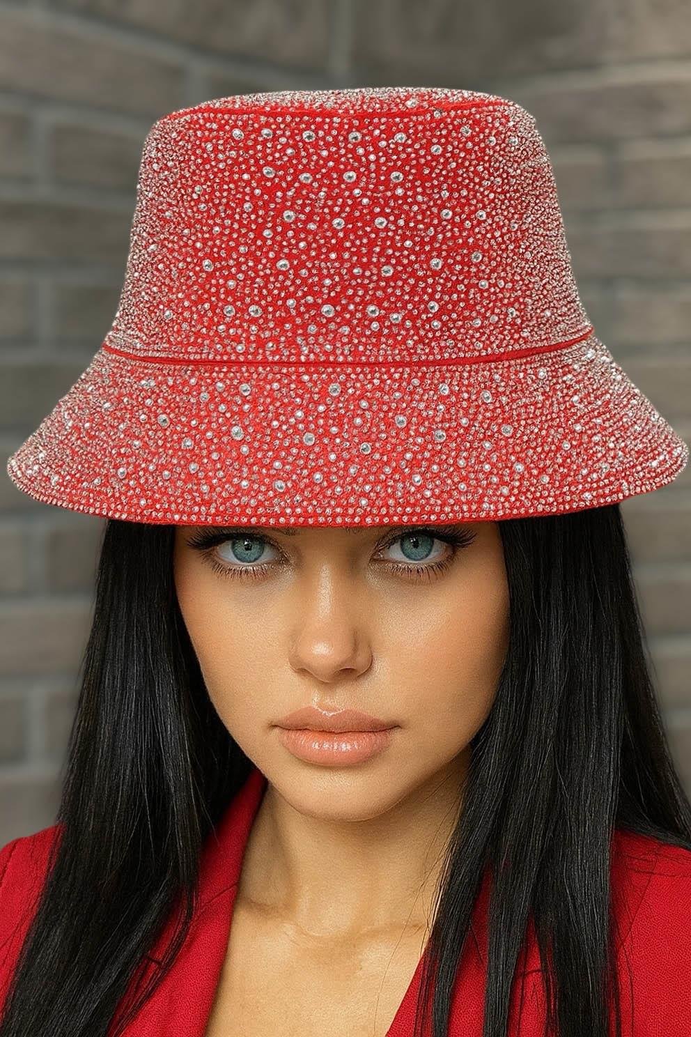 Kırmızı Renk Taş Detaylı Tasarım Şapka