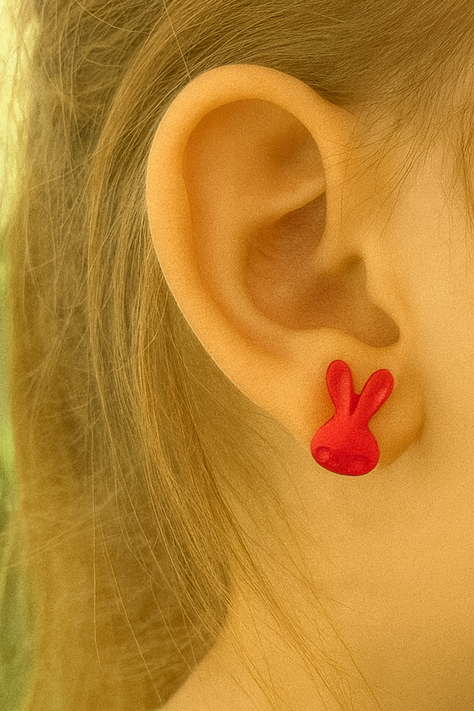 Kırmızı Renk Tavşan Figürlü Çocuk Küpe (Çift)