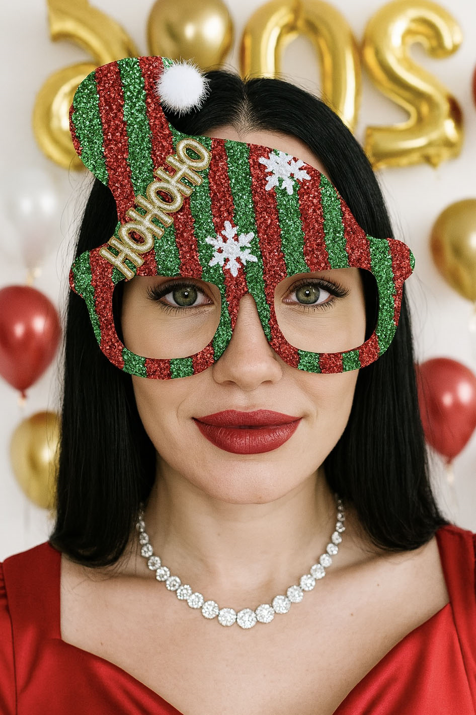 Kırmızı Renk Yılbaşı Temalı Gözlük