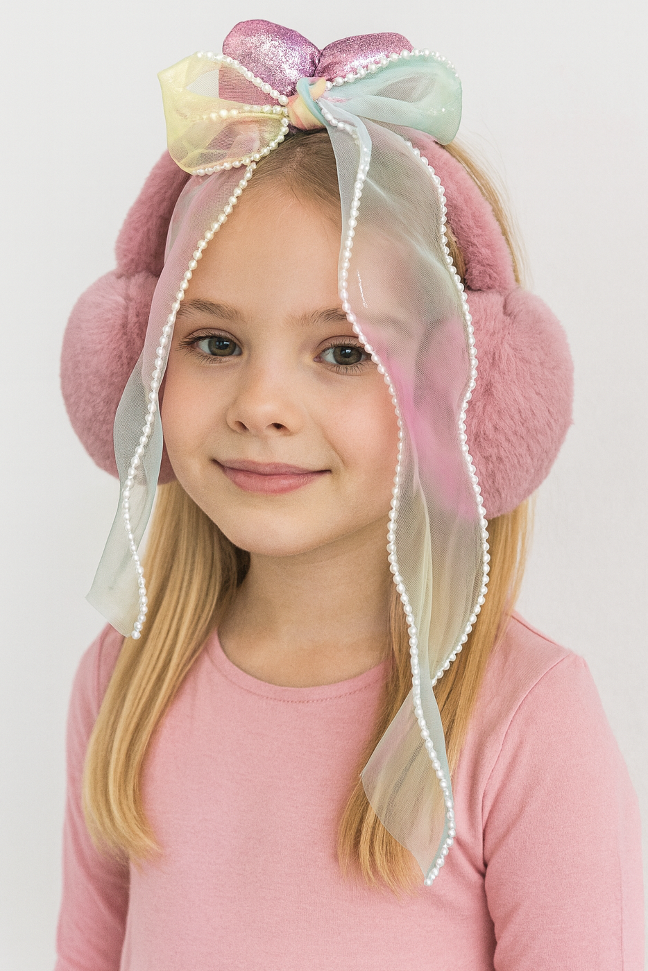Koyu Pembe Renk Kurdele Figürlü Peluş Kulaklık