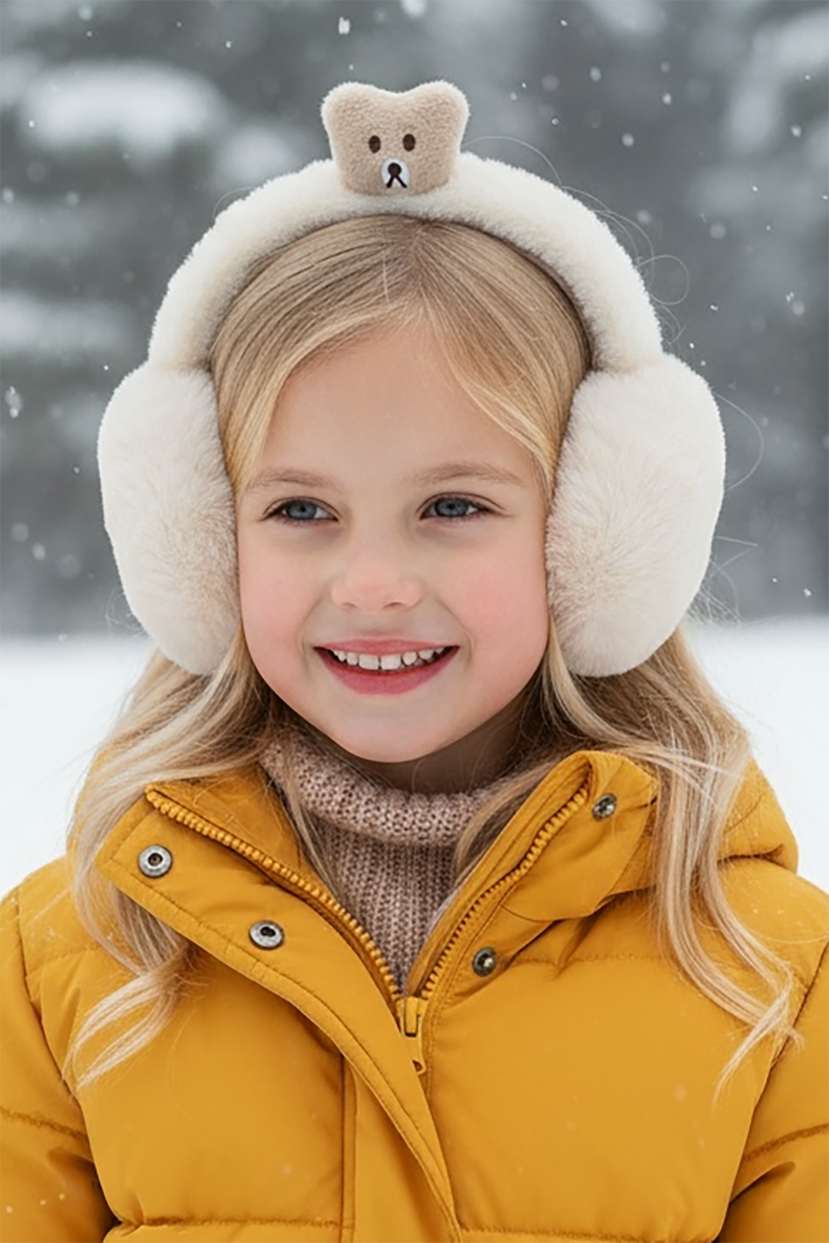 Krem Renk Ayıcık Figürlü Kulaklı Çocuk Peluş Kulaklık