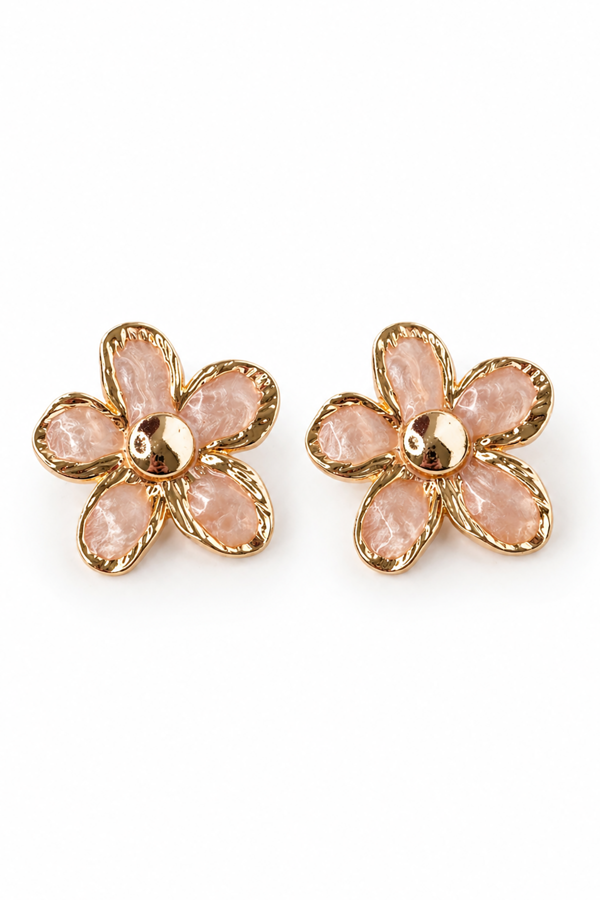 Krem Renk Çiçek Figürlü Küpe (Çift)