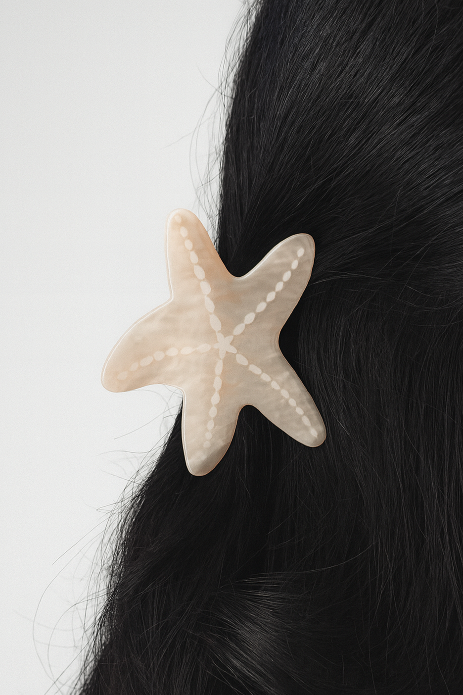 Krem Renk Deniz Yıldız Figürlü Kemik Mandal Toka