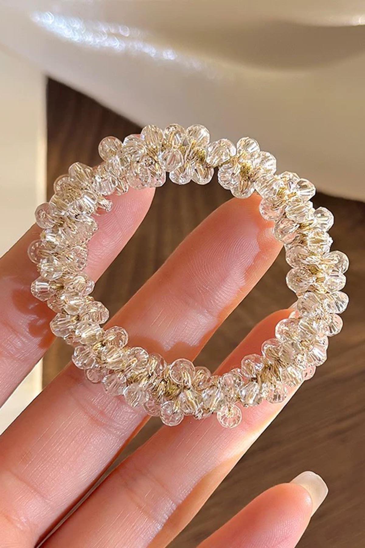 Krem Renk Taşlı Lastik Toka