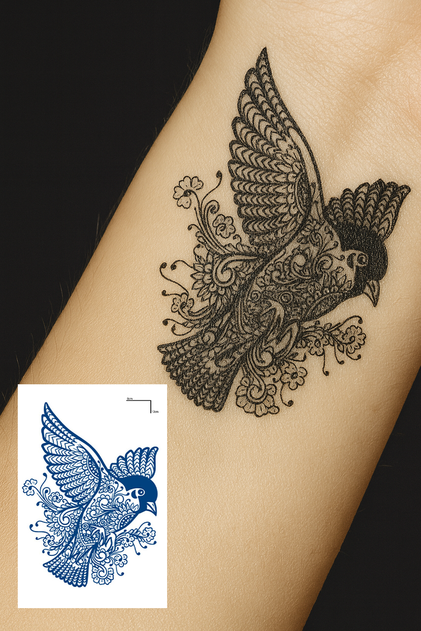 Kuş Figürlü 12 Saat Sonra Kararan Geçici Dövme Tattoo
