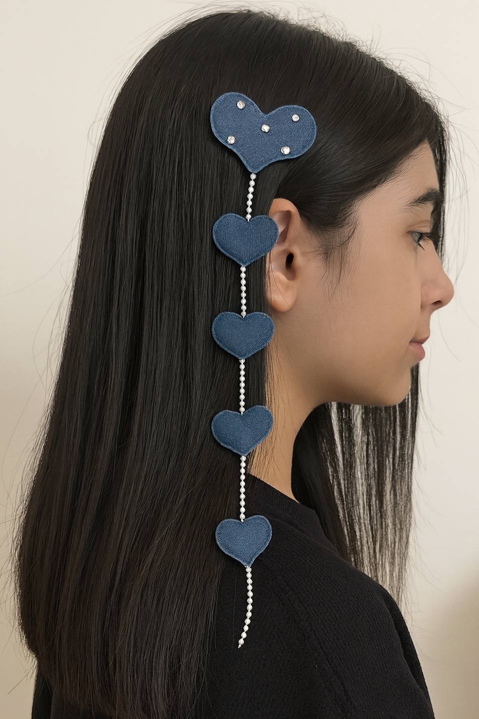 Lacivert Renk Kalp Figürlü İnci Ve Taş Detaylı Pens Toka