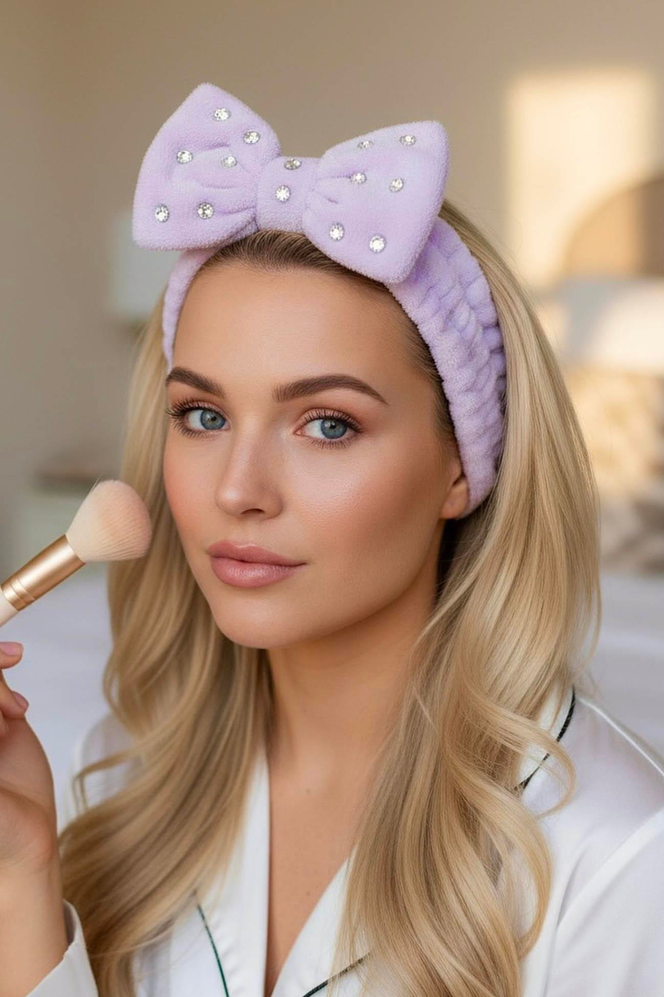 Lila Renk Kurdele Figürlü Taş Detaylı Peluş Saç Bandı
