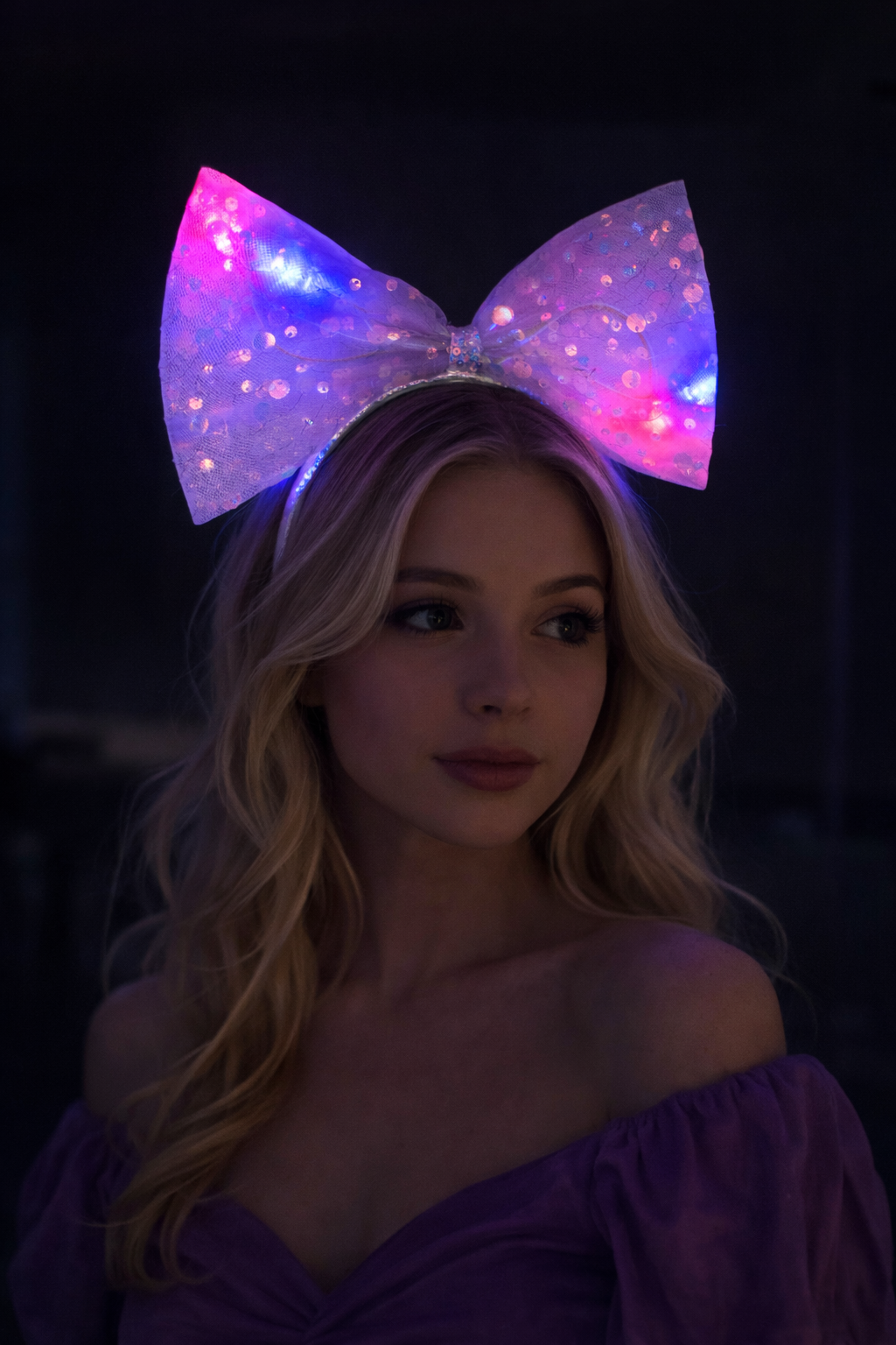 Lila Renk Pullu Kurdele Figürlü Işıklı Taç