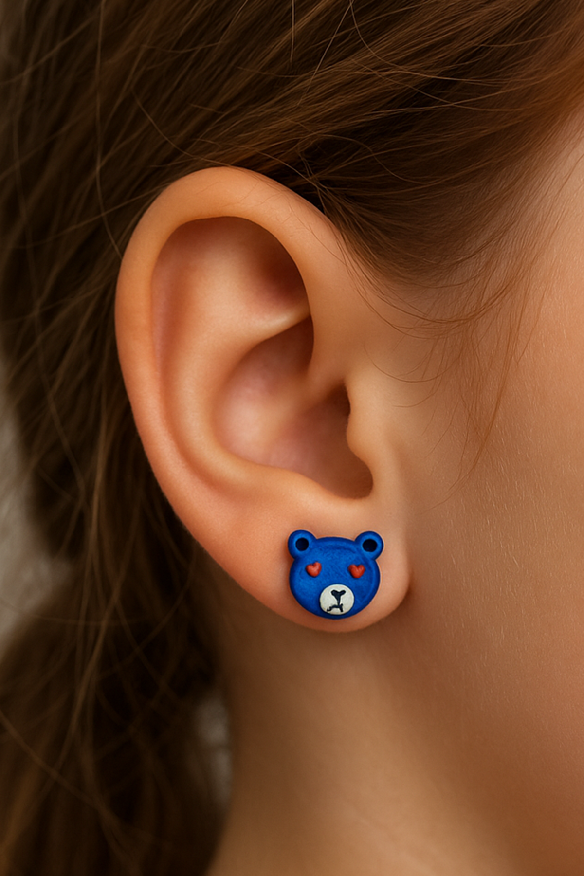 Mavi Renk Ayıcık Figürlü Çocuk Küpe (Çift)