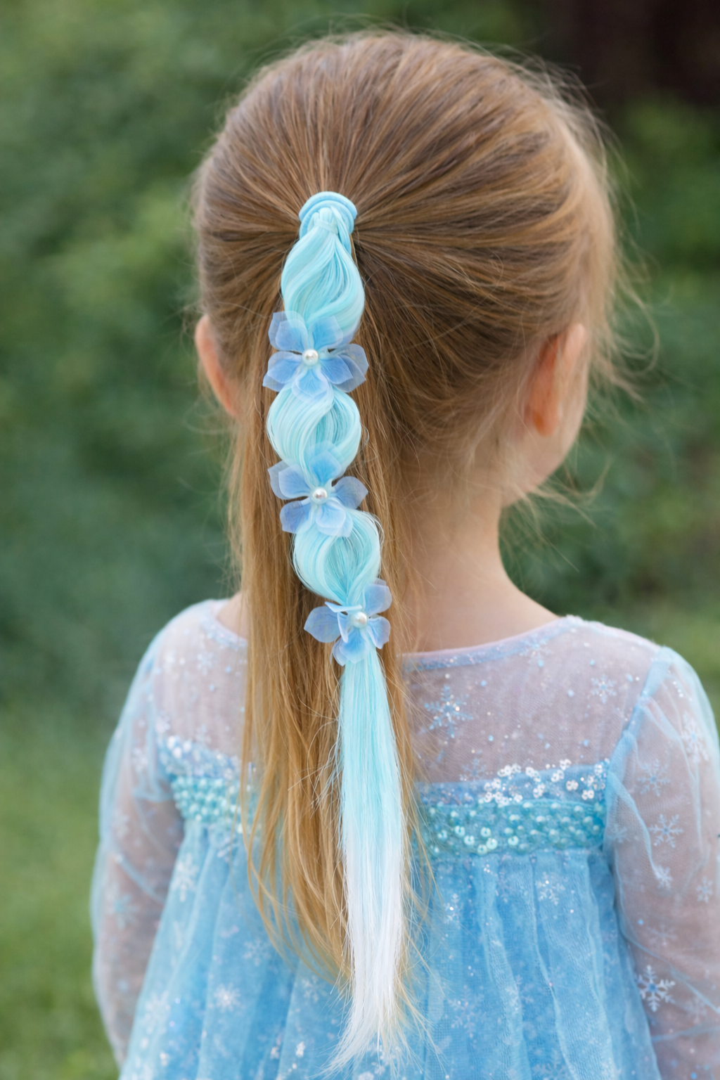 Mavi Renk Çiçek Figürlü Saç Detaylı Lastik Toka