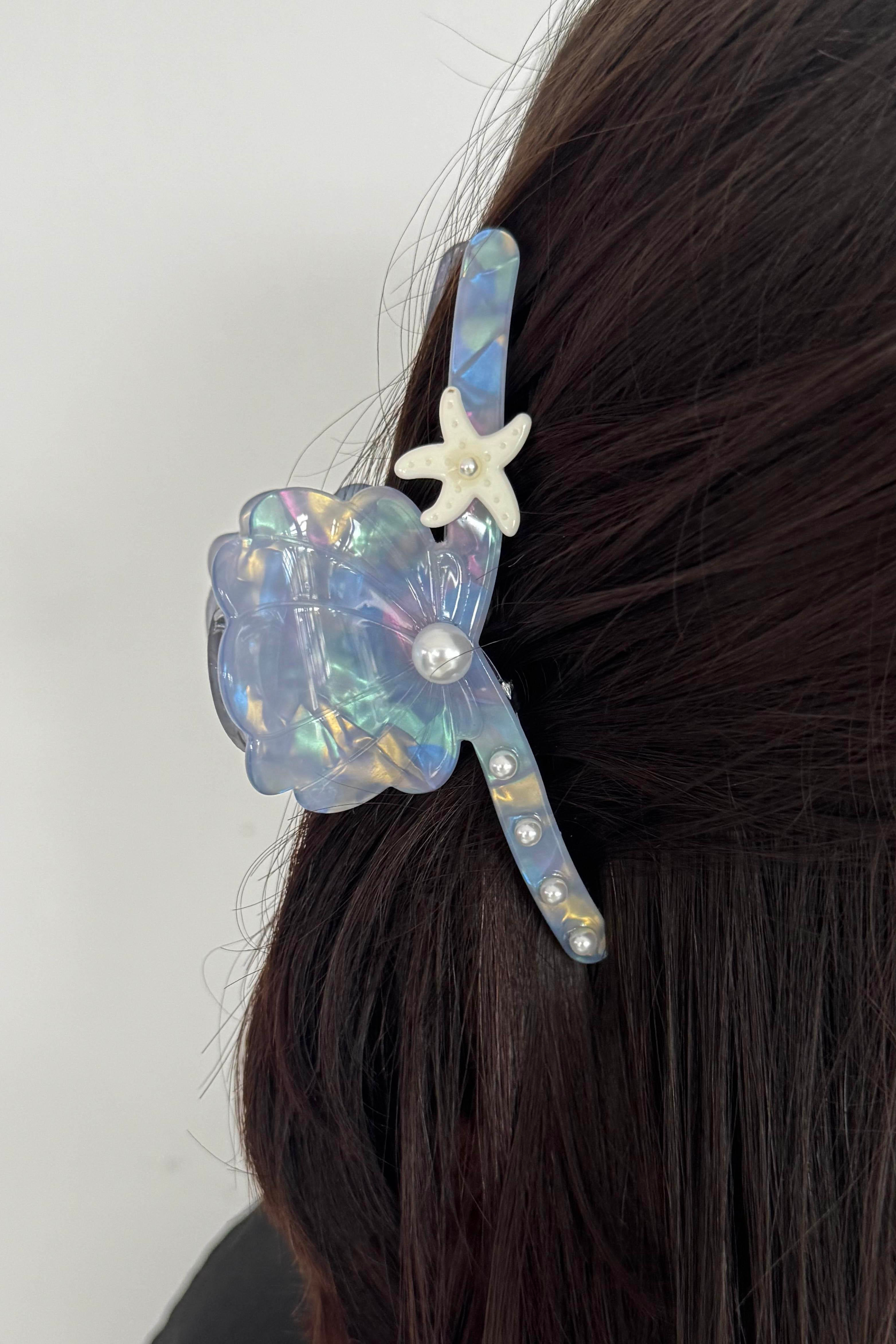 Mavi Renk Deniz Kabuğu Figürlü Kemik Mandal Toka