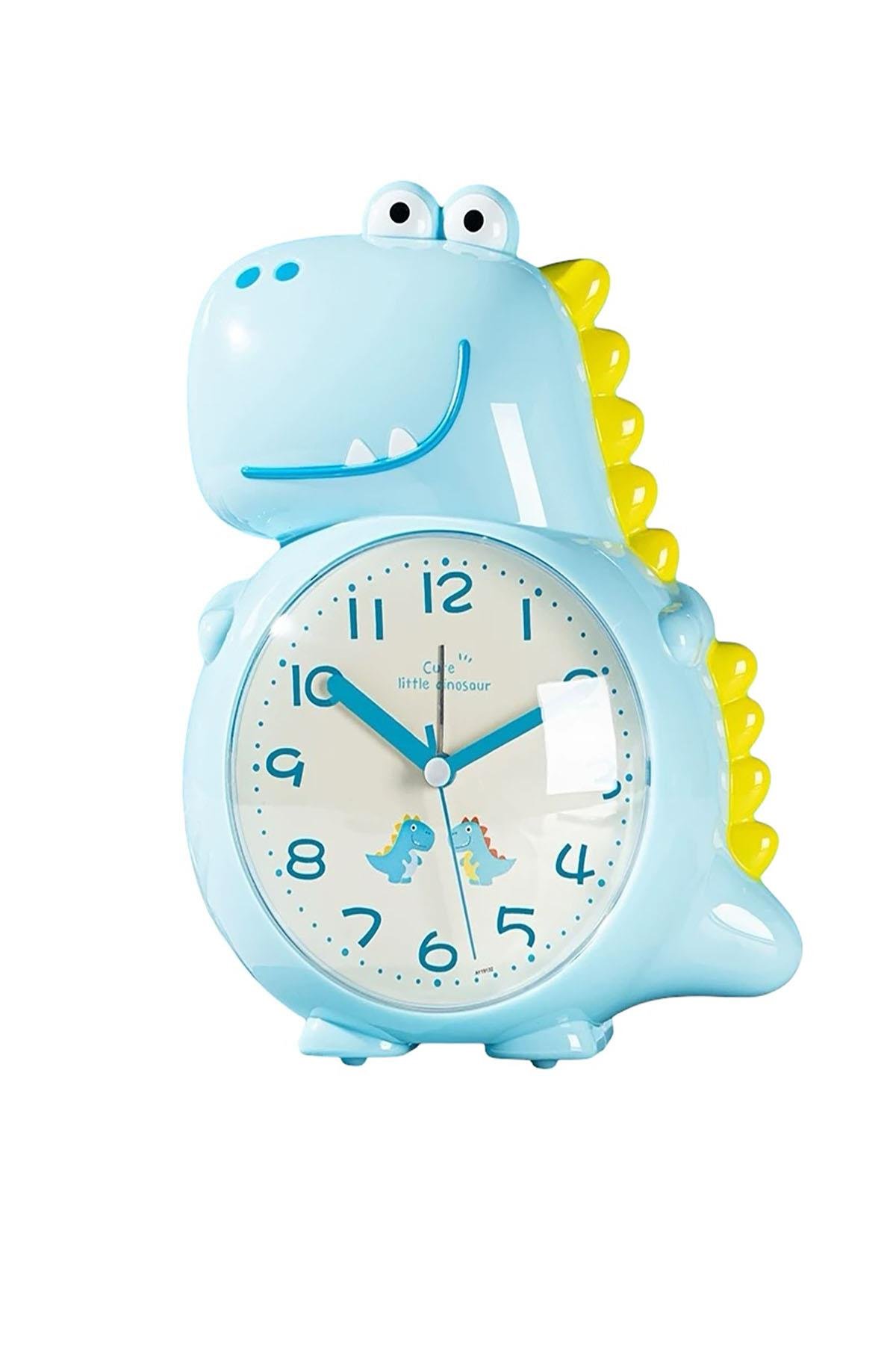 Mavi Renk Dinazor Figürlü Dekoratif Alarmlı Masa Saati