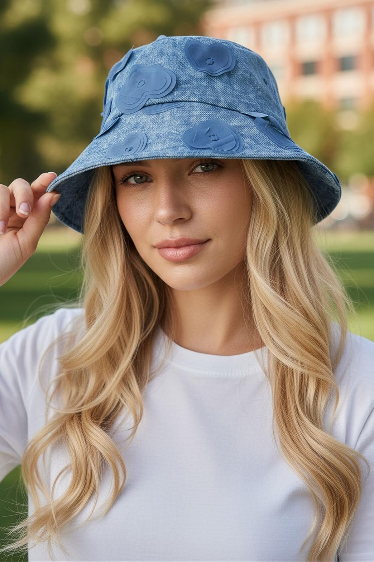 Mavi Renk Kalp Figürlü Tasarım Şapka