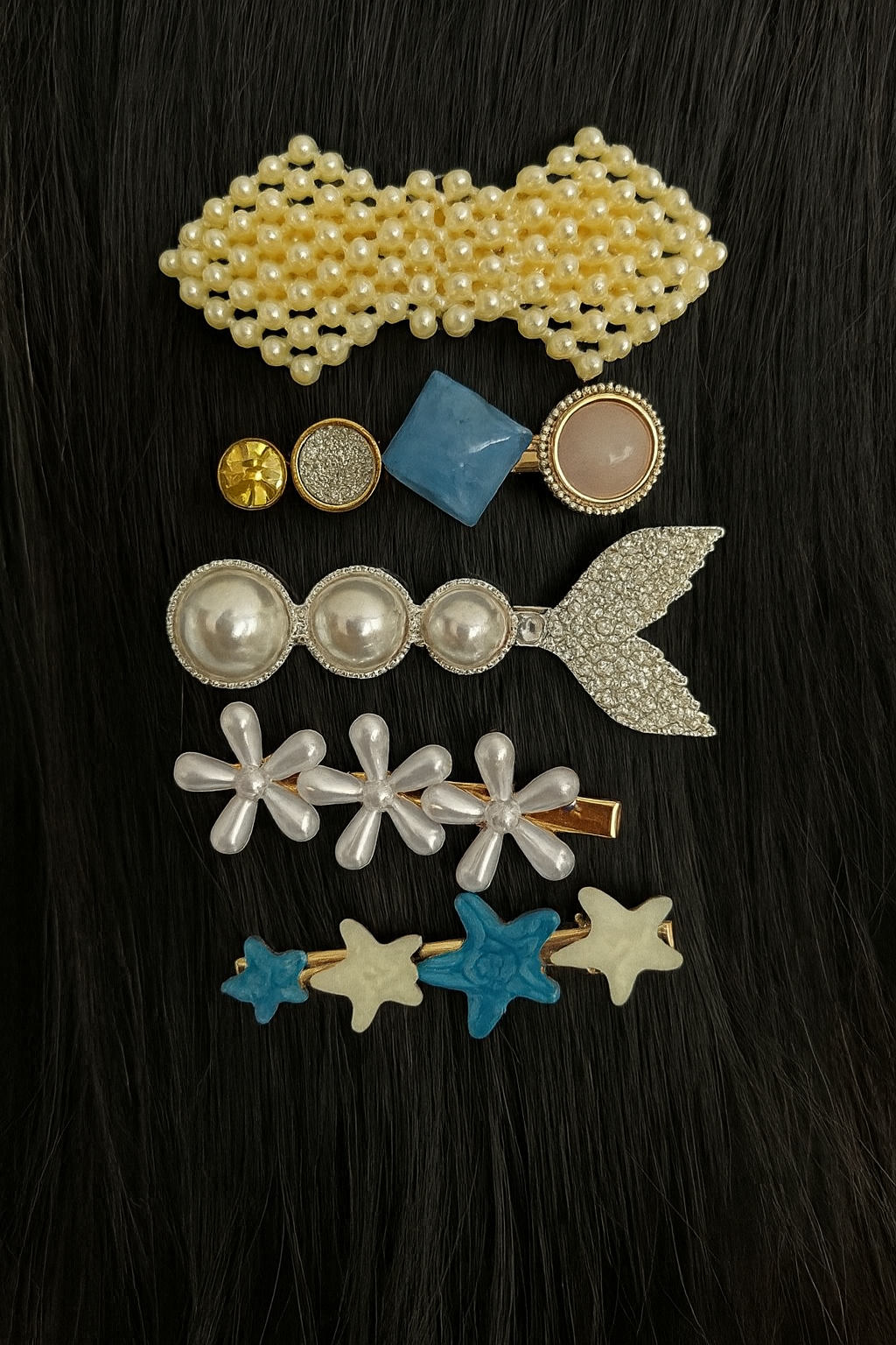 Mavi Renk Taş Detaylı 5'li Yan Toka Set